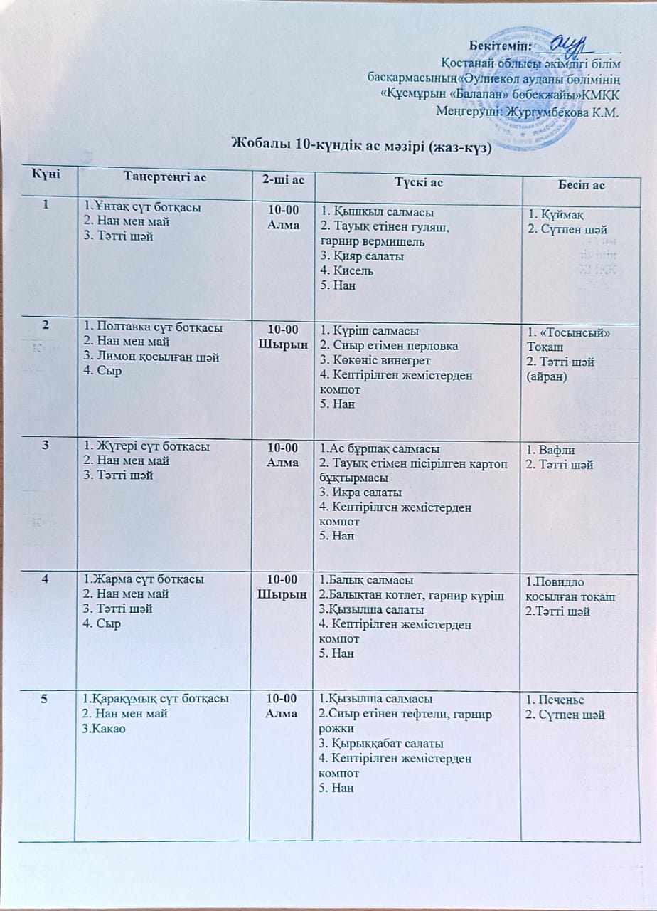 КГКП "Кушмурунский ясли-сад "Балапан" отдела образования Аулиекольского района" Управления образования акимата Костанайской области